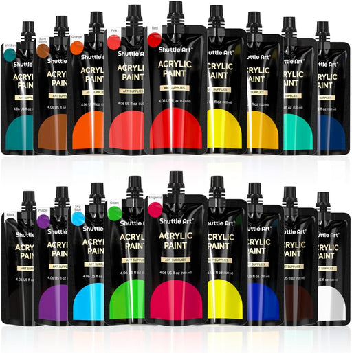 Shuttle Art18 COLORS PREMIUM PAINT : Shuttle Art 18 colors acrylic paint set includes 18 the most commonly used colors paints in pouches, and each contains 1...