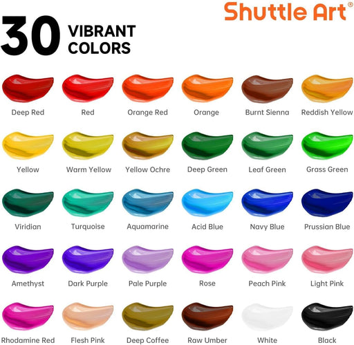 Shuttle Art30 COLORS PREMIUM PAINT: Shuttle Art 30 colors acrylic paint set includes 30 different colors paints in tubes and 3 brushes, and each tube contai...