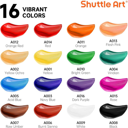 Shuttle ArtVIBRANT ACRYLIC PAINTS: Shuttle Art 16 Acrylic Paint Set consists of 16 vibrant assorted colors and with BONUS 3 FREE PAINT BRUSHES. Each tube is...