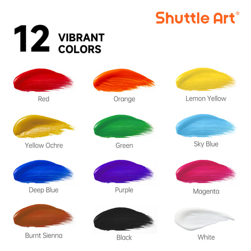 Shuttle Art2 COLORS BULK PAINT: Shuttle Art 12 colors acrylic paint set contains 12 commonly used colors acrylic paints in bottles, and each contains 473ml/1...