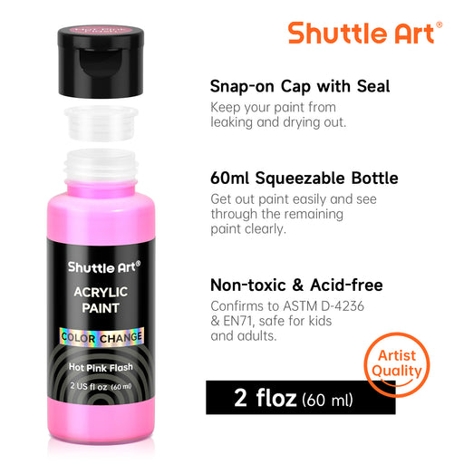 Shuttle Art20 CHAMELEON COLORS: Shuttle Art color change acrylic paint contains 20 colors iridescent paints in bottles, 60m/2oz each, perfect for painting, c...