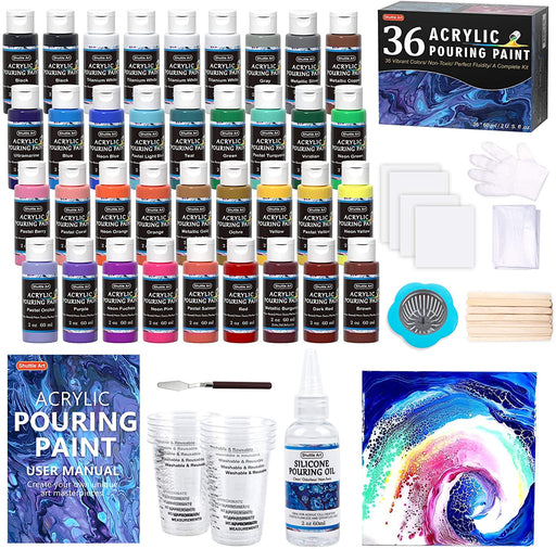 Shuttle ArtCOMPLETE ACRYLIC POURING PAINT KIT: Shuttle Art Acrylic Pouring Paint Set comes with 36 pre-mixed acrylic paints(2oz/60ml), 4Canvas Boards(2 Size...
