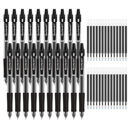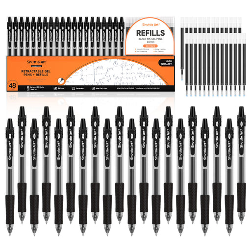 Shuttle ArtQUANTITY:Shuttle Art 48 Pack Retractable Black Gel Ink Pens set has 20 pens with 28 refills,all with black ink. UNLIMITED USES:Shuttle Art...