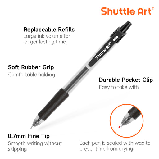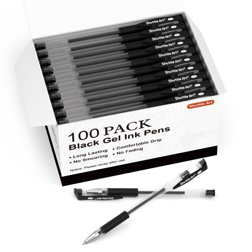 Shuttle ArtQUANTITY:Shuttle Art 100 Pack Retractable Black Gel Ink Pens set has 100 pens,all with black ink. UNLIMITED USES:Shuttle Art 100 Pack Retractabl...