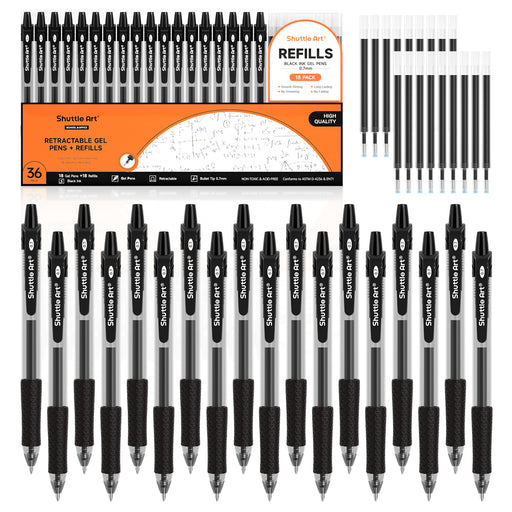 Shuttle ArtQUANTITY:Shuttle Art 36 Pack Retractable Black Gel Ink Pens set has 18 pens with 18 refills,all with black ink. UNLIMITED USES:Shuttle Art 36 P...