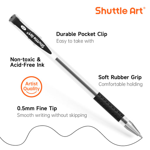 Shuttle ArtQUANTITY:Shuttle Art 70 Pack Retractable Black Gel Ink Pens set has 70 pens,all with black ink. UNLIMITED USES:Shuttle Art 70 Pack Retracta...