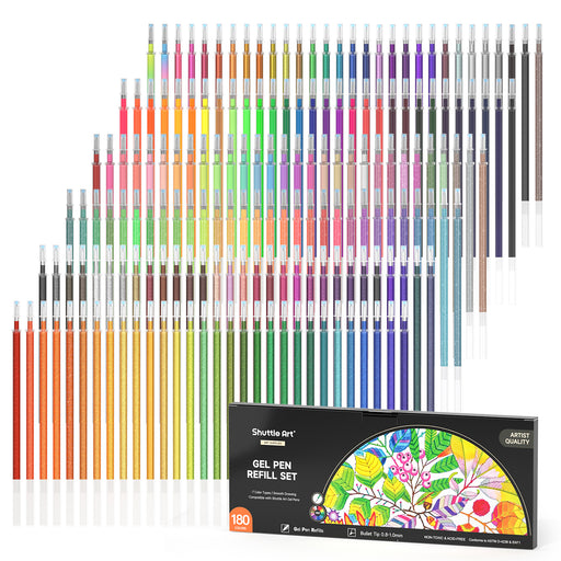 Shuttle Art180 UNIQUE COLORS: Shuttle Art Gel Pen Refills Set has 180 unique colors, including 7 color types: glitter, neon glitter, metallic, neon, pastel, ...