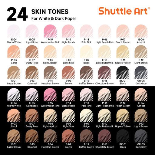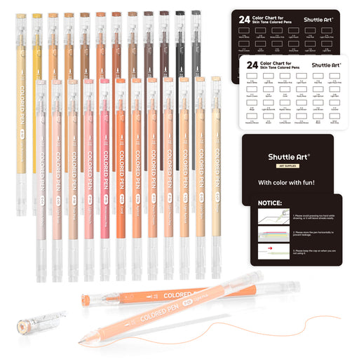 Shuttle Art24 SKIN TONE COLORS & 2 COLOR SHEETS: Shuttle Art colored pen set comes with 24 skin tone colors. Varied and vivid colors look stunning on pap...