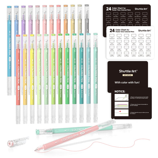 Shuttle Art24 PASTEL TONE COLORS & 2 COLOR SHEETS: Shuttle Art colored pen set comes with 24 pastel colors. Soft and cute colors look stunning on paper, ...