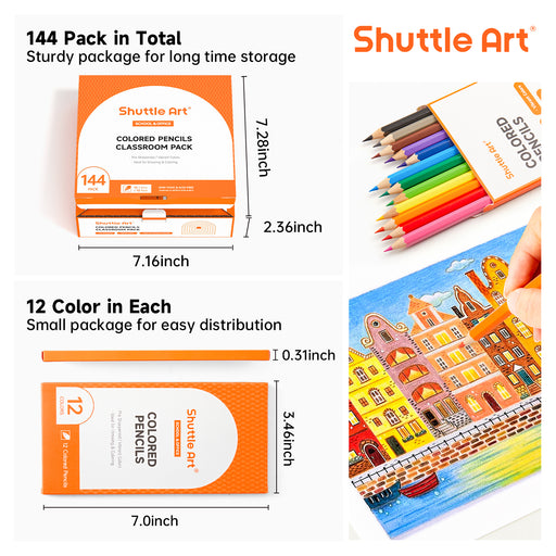 Shuttle Art144 PACK VALUE SET: Shuttle Art 144 pack bulk colored pencils come in 12 packs of 12 assorted colors: Black, Gray, Blue, Cerulean Blue, Spring Gre...