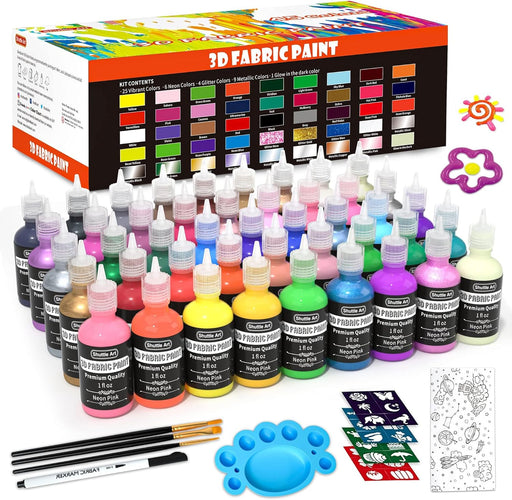 Shuttle Art45 VIBRANT COLORS:Shuttle Art Fabric Paint Set contains 45 vivid and attractive colors including 25 classic, 6 neon, 4 glitter, 9 metallic and 1 ...