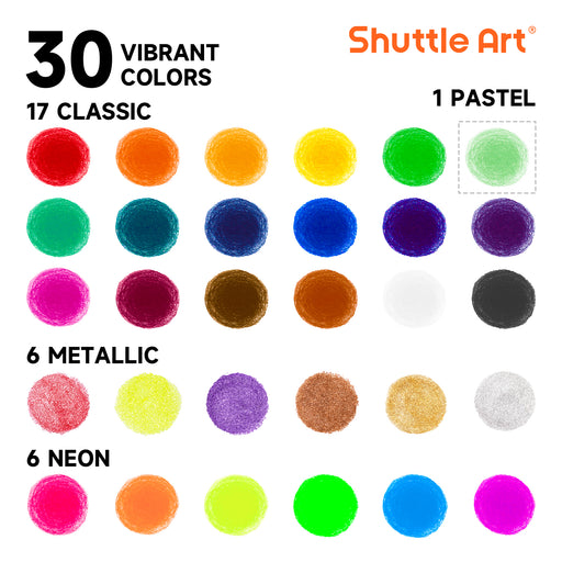 Shuttle Art30 Various & Brilliant Colors: ShuttleArt Tempera Paint Stick kit contains 30 vivid colors:18 bright classic, 6 luminous metallic and 6 dazz...