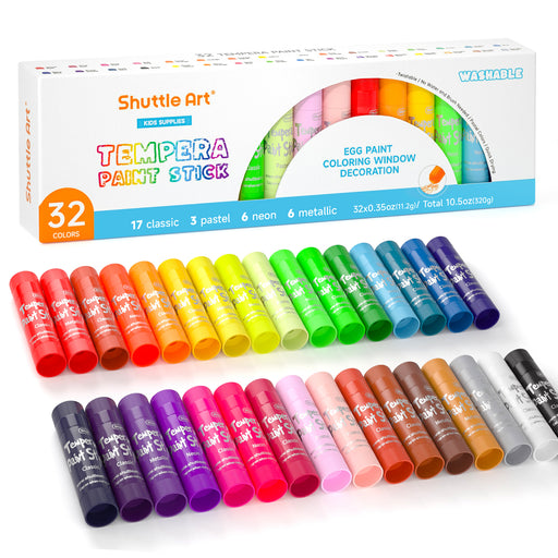 Shuttle Art32 Various & Brilliant Colors:ShuttleArt Tempera Paint Stick kit contains 32 vivid colors:20 bright classic, 6 luminous metallic and 6 dazzli...