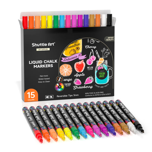 ENDLESS POSSIBILITY: Shuttle Art 15 Vibrant Colors liquid chalk markers, reversible 3mm fine tip is perfect for crafting and DIY projects, used on...
