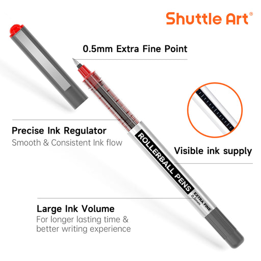 Shuttle ArtCONVENIENT VALUE PACK: Shuttle Art 25 pack 0.5mm roller ball pens are all with red ink. 25 Combo Pack will fully meet your demands of daily writi...