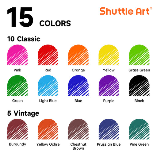 Shuttle Art15 UNIQUE COLORS: Shuttle Art liquid ink rollerball pens set has 10 bright colors and 5 vintage colors. Unique colors will fully meet your demand ...