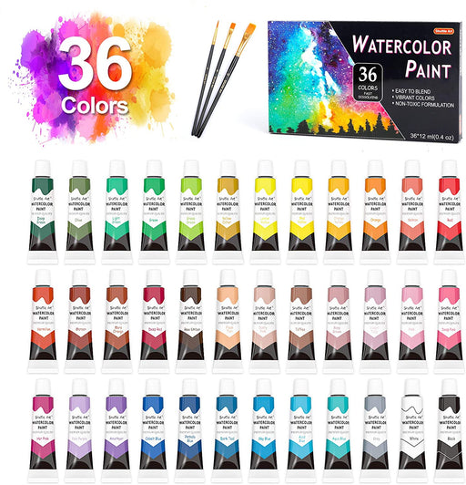 View full detailsWatercolor Paint, 12ml Tube with 3 Brushes - Set of 36