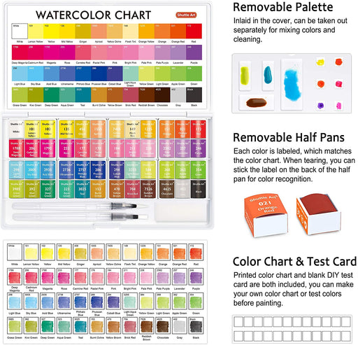 Shuttle ArtShuttle Art 48 Watercolor Pan Set contains 48 assorted solid watercolor paints with 3 FREE paint brushes in the case which are perfect for painti...