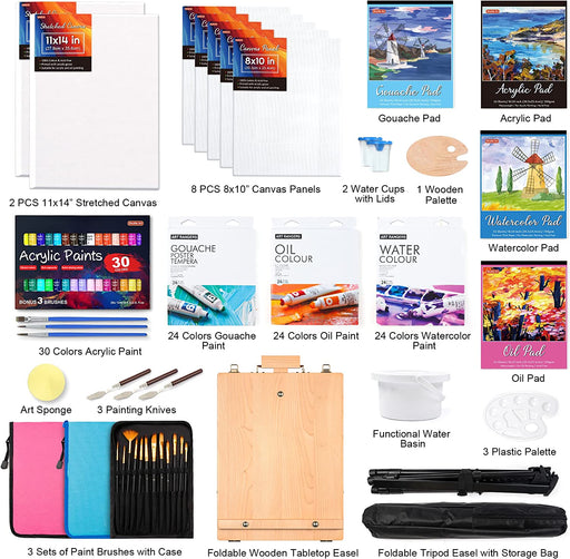 View full detailsShuttle Art 170 Pcs Artist Painting Set, Deluxe Art Set with Paint, Aluminum and Wooden Easels, Canvas, Paper Pads, Brushes and Other Art Supplies